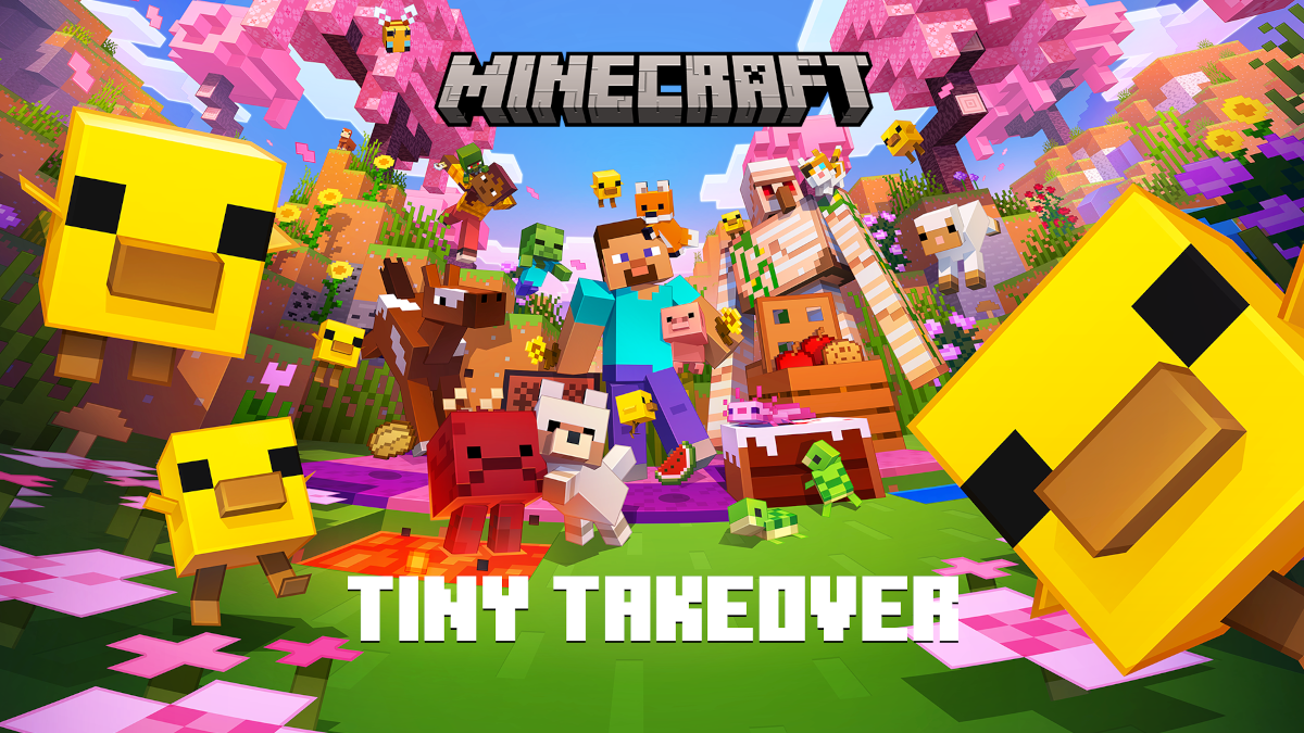 Tiny Takeover is a Minecraft-sponsored campaign on Twitch running from April 6, 2026. Twitch streamers — both Partners and Affiliates — can opt in to stream Minecraft and earn up to $1,000. Viewers who watch 5 minutes of Minecraft on Twitch receive exclusive in-game drops.